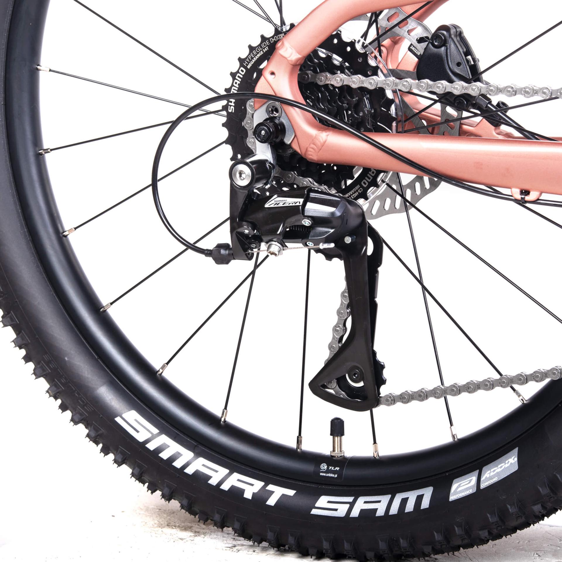 • Niezawodne komponenty: Wyposażony w wysokiej jakości komponenty Shimano, które gwarantują płynną zmianę biegów i niezawodne działanie hamulców.